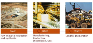 Our current predominant model is the linear Take-Make-Waste model, in which we take a material use it to create a product and when we have finished with the product we send it to the waste phase, often called the end-of-the-pipe.